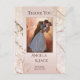 Une carte postale romantique avec votre photo mariage préférée encadrée par un motif rose or fleuri sur un arrière - plan en marbre avec des étincelles légères.