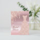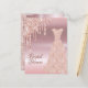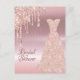 Elégante, classique, glamour et girly style nuptiale invitation à la douche nuptiale. Une robe en or rose avec fausse parties scintillant rose en or goutte à goutte. Rose doré foncé faux arrière - plan à l'apparence métallique . Avec le texte : Douche nuptiale sur l'avant écrite avec un rose moderne de couleur foncé écriture de style lettré à la main. Ajoutez les détails de votre événement sur le dos, en lettres gris foncé.