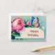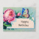 Carte Postale Rose rose et papillon : Joyeux anniversaire