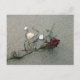 En marchant sur la plage de Long Beach Island, nous sommes tombés sur cette rose rouge, perdue en mer. Les pétales roses, la tige épineuse et les feuilles verts étaient séchés et trempés. La tige de fleur est entrelacée avec l'herbe elée. Trois petits coquillages sont posés dans le sable à côté du rose perdu. Ce long rose à tige a été lavé sur la plage du New Jersey, alors qu'une tempête passait au large de l'océan Atlantique.