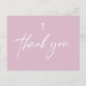 Les baptêmes sont des événements bénis et remercier vos invités d'avoir assisté est une merveilleuse façon de les garder connectés et de poursuivre les prières pour votre bébé. Personnalisez cette carte de remerciement rose, blanche et simple avec le nom du bébé, le message et l'adresse de retour,