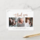 Ce Simple Rose Gold Script 3 Photo Baby merci carte postale caractéristiques or rose calligraphie manuscrite merci et détails de naissance sur le devant. Le dos comprend un message personnel de toute la famille. Cliquez sur le bouton Modifier pour customiser cette conception avec vos photos et détails.