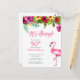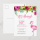 Définissez le ton pour une célébration d'anniversaire 50 ans amusante et estivale avec cette jolie carte postale d'invitation de fête "Let's Flamingle" tropicale ! Avec une goutte de fleurs aquarelles tropicales colorées, comprenant des hibiscus, des bouteilles brosse, des oiseaux de paradis lumineux et du feuillage de palmier, suivie de "Let's Flamingle" en rose flamingo. Personnalisé sur le devant avec du texte de rose et de vert assortis. Copyright Elegant Invites, tous droits réservés