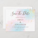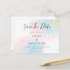 Un design romantique de pastel rose pâle et bleu turquoise aquarelles avec des éclats de confettis dorés. Le texte marron peut être facilement personnalisé et la couleur changée si vous le souhaitez via le clic pour customiser plus d'option.