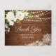 Carte Postale Roses blanches élégantes et dentelle Merci en bois