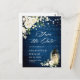 Carte Postale Roses blanches Mariage en bois bleu Enregistrer la