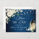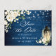 Carte Postale Roses blanches Mariage en bois bleu Enregistrer la