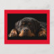 "Ww... who can resist the sweet face of a Rottweiler puppy dog" ? This fun canine postcard feh image of a sleepy brown and Black Rottweiler pup resting on a black background. Card est blanc et veut une combinaison d'occasion. Postcards are the economical alternative to greeting cards when you want to send a quick note to friends and family. Canine blank postcards are great for many d’occasion - business stores, vets, groomers, breeders, etc. Attach to toxits / welcome baskets/ wedding & party Notes Dog rescue / adoption d’organes de scrapbooks / notes en birthdays / thinking of you / sorry annotoine unligne - Sales, events, party Stationery gift sets Rottweiller, rottweiler, thinking of you, thank you, missing you, love, congratulations, désolé, birthday, get well, missing you, lets get together