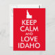 Design de texte "Keep Calm and Love Idaho" personnalisable en rouge et blanc avec une forme de carte de l'état. Vous pouvez créer votre propre carte postale souvenir. Vous pourrez modifier la couleur de l'arrière - plan pour personnaliser le design.