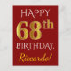 Carte Postale Rouge, Faux Gold 68e anniversaire + Nom personnali