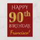 Carte Postale Rouge, Faux Gold 90e anniversaire + Nom personnali