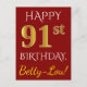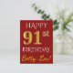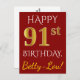Carte Postale Rouge, Faux Gold 91e anniversaire + Nom personnali