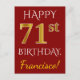 Carte Postale Rouge, Faux Or 71e Anniversaire + Nom Personnalisé