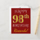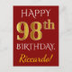 Carte Postale Rouge, Faux Or 98e Anniversaire + Nom Personnalisé
