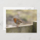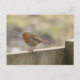 Un Rouge-gorge familier (Erithacus rubecula) debout sur une clôture en bois au Rising Sun Country Park, Newcastle upon Tyne.
