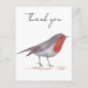 Carte Postale Rouge-gorge oiseau aquarelle bois hivernal Festif