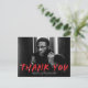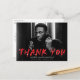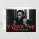 Une graduation moderne et élégante grâce à la carte postale avec la photo horizontale du diplômé avec "Merci" en lettres rouges avec des plaques de peinture blanches. Personnalisez le devant de la carte postale de remerciement en ajoutant le nom du diplômé, le nom de l'école et l'année de remise des diplômes. Le dos de la remise de diplômes vous remercie carte postale avec votre adresse de retour et espace pour un message de remerciement dactylographié ou manuscrit.
