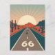 Captivez l'excitation de la route ouverte avec cette carte postale de voyage vintage Route 66 USA, mettant en vedette une moto rétro circulant à travers des paysages géométriques audacieux. Inspiré par l'Américana classique et la liberté des voyages en voiture, ce design à contraste élevé est parfait pour les amateurs de moto, les passionnés de la Route 66 et les fans d'art de voyage de style vintage. Excellent comme carte postale de collection, cadeau ou décoration pour les âmes assoiffées de voyage.