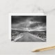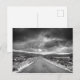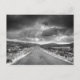 Cette photo montre un noir et blanc d'une route menant à une tempête de pluie.
