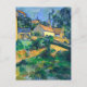 Une carte postale représentant la peinture artistique de l'artiste post-impressionniste français Paul Cézanne (1839-1906), Route tournante à Montgeroult (1898). Un tableau représentant un paysage luxuriant sur une colline avec des maisons dans un petit village français.