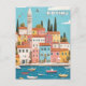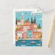 Cette carte postale de voyage présente une illustration fantaisiste représentant le paysage urbain de Rovinj. C'est une carte postale idéale pour les voyageurs à Rovinj, Croatie.
