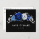 Carte Postale Royal Bleu Blanc Argent Floral Enregistrer la date