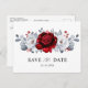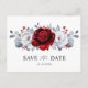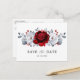 Elégant mariage à thème blanc rouge royal argent enregistrer la carte postale date avec l'élégant bouquet de rouge rubis royal, crammson, argent, couleur blanche pure bourgeons de fleurs roses et feuilles eucalyptus. Veuillez me contacter pour toute aide sur la personnalisation ou si vous avez besoin d'un autre produit avec ce design.