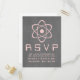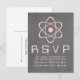 Carte de réponse du Mariage de Chalkboard atomique mignonne et nerveuse avec un simple symbole atomique rose pâle sur un tableau de Chalkboard look arrière - plan. Cette carte postale de mariage geeky et amusant RSVP est parfaite pour le couple passionné de science ! Facile à customiser, il suffit d'ajouter les détails de votre mariage dans les espaces prévus. Cliquez sur "Customiser" pour trouver d'autres options de personnalisation.