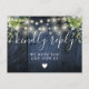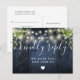 Une corde illumine le bois rustique de la grange bleue avec le boho vert RSVP carte avec la typographie chic. L'inverse vous donne vos détails et une demande amusante de chant invité. Conçu par Thisisnotme©