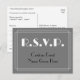 Cette carte postale générique inspirée des années 1920 de R.S.V.P. présente le message "R.S.V.P." sur le devant, ainsi qu'une description customisée de l'événement et de l'occasion. Il comporte également un formulaire RSVP personnalisé au verso que le destinataire doit remplir, ainsi qu'une adresse personnalisée à laquelle les cartes RSVP complétées seront envoyées par la poste. Les cartes RSVP comme celle-ci pourraient peut-être être utilisées pour savoir qui assistera à une fête de remise de diplômes, un baby shower, une fête d'anniversaire, une réception de mariage ou une autre célébration.