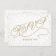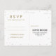 De minuscules étoiles dorées brillent dans les nuages de confettis autour du bord de cette belle carte postale de réponse or et blanc, avec un script d'effet de parties scintillant d'or "RSVP". Ambiance, chic et enchanteur. Idéal pour une fabuleuse affaire. Oeuvre originale de Colleen Michele. Veuillez noter qu'il n'y a pas de véritable effet de parties scintillant or ou de feuille d'or sur les étoiles et le script ; aucune parties scintillant, feuille d'or ou encre métallique ne sera utilisée dans cette invitation.