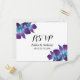 Carte postale RSVP pour mariage Dendrobium orchidée violet et bleu turquoise. Un design simple de carte postale RSVP de mariage qui présente une belle variété d'orchidées appelée dendrobium bleu. Il est turquoise / turquoise dans la couleur associée à violet et violet royal violet. Un grand choix de fleurs pour le thème de la couleur mariage paon. Contactez le concepteur si vous souhaitez que d'autres éléments correspondants soient associés à cette conception qui n'est pas déjà incluse dans la collection.