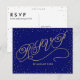 L'effet de parties scintillant en or scintillant sur les nuages de confetti autour de cette belle invitation de la fête de la Saint Sylvestre bleu marine, avec un script d'effet de parties scintillant en or "New Year's Eve Party". Parfait pour une soirée chic et chic ! Oeuvre originale de Colleen Michele. Veuillez noter qu'il n'y a pas de véritable effet de parties scintillant or ou de feuille d'or sur les étoiles et le script ; aucune parties scintillant réelle, feuille d'or ou encre métallique ne sera utilisée dans cette invitation.Des étoiles minuscules, brillantes d'or brillent dans les nuages confettis autour du bord de cette belle carte postale de réponse or et bleu marine, avec un script d'effet de parties scintillant d'or lisant "RSVP". Ambiance, chic et enchanteur. Idéal pour une fabuleuse affaire. Oeuvre originale de Colleen Michele. Veuillez noter qu'il n'y a pas de véritable effet de parties scintillant or ou de feuille d'or sur les étoiles et le script ; aucune parties scintillant, feuille d'or ou encre métallique ne sera utilisée dans cette invitation.