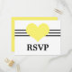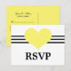 Carte postale simple et charmante Mod Heart Mariage Response avec une triple bande de rayures et un coeur chéri en jaune. Cette carte postale rsvp douce mais minimaliste est parfaite pour un mariage moderne et élégant. Facile à customiser, il suffit d'ajouter les détails de votre mariage. Cliquez sur "Customiser" pour trouver d'autres options de personnalisation.