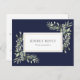 Une élégante carte RSVP couleur bleu marine avec vos détails dans la typographie chic. L'inverse vous donne vos détails et une demande amusante de chant invité. Conçu par Thisisnotme©