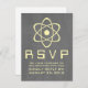 Carte de réponse du Mariage de tableau noir atomique mignonne et nerveuse, avec un simple symbole atomique en jaune sur un tableau de bord à l'air arrière - plan. Cette carte postale de mariage geeky et amusant RSVP est parfaite pour le couple passionné de science ! Facile à customiser, il suffit d'ajouter les détails de votre mariage dans les espaces prévus. Cliquez sur "Customiser" pour trouver d'autres options de personnalisation.