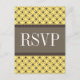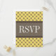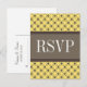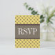 Carte postale RSVP Fancy Lattice tendance et chic avec un cercle élégant et un motif clouté au diamant sur un arrière - plan jaune citron vibrant avec une large bordure brune bicolore. Cette élégante carte RSVP est parfaite pour un mariage moderne. Facile à customiser, il suffit d'ajouter les détails de votre mariage dans les champs de texte fournis. Cliquez sur "Customiser" pour trouver d'autres options de personnalisation.