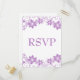 Carte postale moderne et élégante Simple Floral Mariage Response en lavande avec cascades de belles vignes et fleurs. Cette carte postale élégante RSVP est parfaite pour un mariage de printemps ou d'été. Facile à customiser, il suffit d'ajouter les détails de votre mariage. Cliquez sur "Customiser" pour trouver d'autres options de personnalisation.