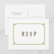 Carte postale simple et minimaliste Deco Chic Wedding RSVP avec une bordure décorative moderne d'art vert. Cette carte de réponse classique et élégante est facile à customiser avec vos détails mariages. Pour plus d'options de personnalisation, cliquez sur Personnaliser.