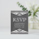 Elégante et chic Deco Chalkboard Mariage Response Carte Postale avec une texture chalkboard tendance look arrière - plan et une paire de bordures tourbillonnantes d'ivoire art déco. Cette jolie carte postale RSVP est parfaite pour un mariage art déco des années 1920. Facile à customiser, il suffit d'ajouter les détails de votre mariage. Cliquez sur "Customiser" pour trouver d'autres options de personnalisation.