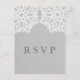 Simple et sophistiquée Elegant Lace Mariage Response Carte Postale avec un motif dentelle blanc sur un arrière - plan papier vintage gris clair. Cette carte postale RSVP classique et élégante est parfaite pour un mariage rustique. Facile à customiser avec vos détails mariages. Cliquez sur "Customiser" pour trouver d'autres options de personnalisation.