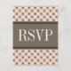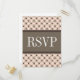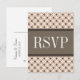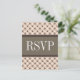 Carte postale RSVP Fancy Lattice tendance et chic avec un cercle élégant et un motif clouté en diamant sur un arrière - plan de pêche dynamique avec une large bordure brune bicolore. Cette élégante carte RSVP est parfaite pour un mariage moderne. Facile à customiser, il suffit d'ajouter les détails de votre mariage dans les champs de texte fournis. Cliquez sur "Customiser" pour trouver d'autres options de personnalisation.