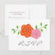 Simple et fantaisiste En fleurs Floral Wedding RSVP Postcard avec une illustration avec une belle paire de fleurs en rose et orange flanquée d'un ensemble de vignes vertes vibrantes. Cette carte postale élégante de mariage est parfaite pour un mariage de printemps ou d'été. Facile à customiser, il suffit d'ajouter les détails de votre mariage dans les champs de texte fournis. Cliquez sur "Customiser" pour trouver d'autres options de personnalisation.