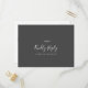 Cette carte postale RSVP minima feuille gris foncé demande de chanson est parfaite pour un mariage élégant. Le design se compose d'une simple silhouette verte en gris charbon de bois, au style minimaliste classique. Créez votre liste d'invités mariages et votre liste de chansons de piste de danse tout à la fois ! Cette carte postale de réponse mariage demande si les invités pourront assister à votre mariage, et aussi quelle chanson les amènera à danser.
