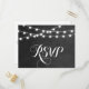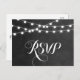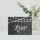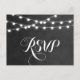 Chic moderne mariage d'été RSVP réponse carte postale design avec des lampes à cordes élégantes et simples accrochées au sommet et un mélange classe de polices de script modernes et de calligraphie sur un arrière - plan imprimé fausse aquarelle texture. Un design simple et élégant, parfait pour l'été ! Cliquez sur le bouton CUSTOMISER IT pour customiser les polices, déplacer du texte et créer votre propre conception unique d'invitation unique.