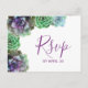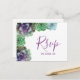 Cette carte postale RSVP présente des succulents d'aquarelle en vert et violet. Si vous souhaitez ajouter des éléments correspondants, n'hésitez pas à me contacter. S'il vous plaît faites-moi savoir si vous avez besoin d'aide, je suis ici pour aider !
