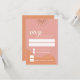 Cette carte rsvp est dotée d'une police super à thème rétro et d'une combinaison de couleurs rose et orange funky avec une orientation verticale. Modifiez facilement le libellé *most* et utilisez cette fiche de réponse pour toute occasion ou événement. Cette carte de réponse comprend une carte postale en option à l'envers pour un envoi facile et sans tracas. Si vous choisissez de supprimer le support de carte postale, sélectionnez "cliquer pour customiser plus loin" dans la section personnalisation. Une fois dans l'éditeur complet, cliquez sur le côté arrière et supprimez.