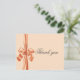 Joli pêche, ruban de satin synthétique de couleur orange pastel du haut vers le bas sur cette magnifique carte de remerciement de mariage à petit prix. Simplicité avec une touche d'élégance à son meilleur. Tout simplement ravissant. Parfait pour un mariage de toutes saisons. Écrivez votre message personnel au verso.