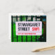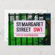 N'oubliez pas de flâner dans les rues de Londres ou d'ajouter à votre collection avec cette carte postale d'une affiche de rue de la rue St. Margaret à Westminster.
