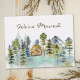 Voici notre Rustic Foggy Forest Mountain Cabine We Moved Postcard. Doté d'un cabine douillet niché dans une pinède verte brumeuse, parfait pour les amoureux de la nature et les amateurs de randonnées, ce paysage serein capture la beauté des bois et le calme de la forêt dans le style vintage.